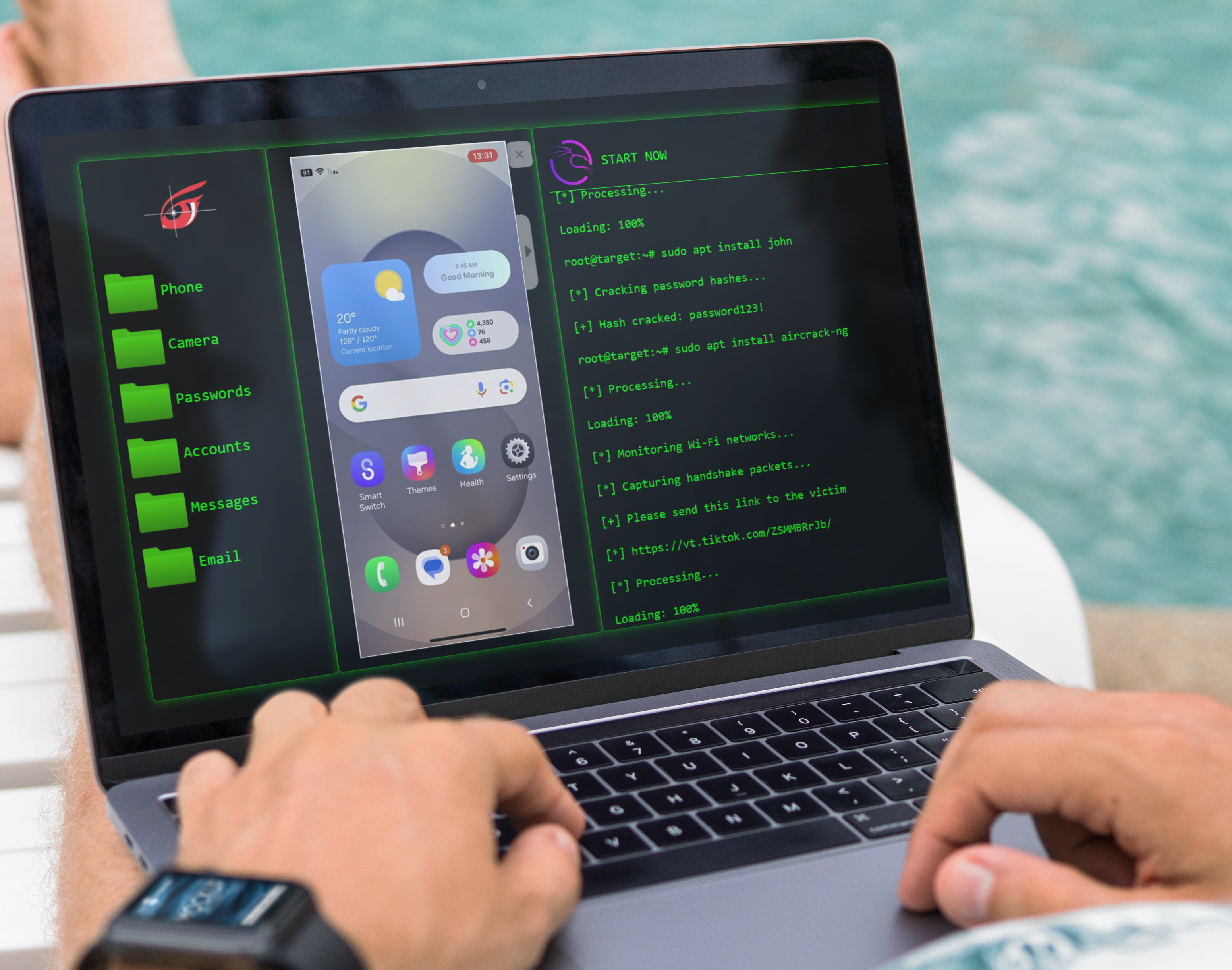 LITERALLY, YOU DON'T HAVE TO DO ANYTHING, AND YOU DON'T NEED TO KNOW HOW TO DEAL WITH PROGRAMMING OR HACKING. THE AI TAKES CARE OF EVERYTHING. YOU JUST NEED TO PROVIDE THE COUNTRY, TARGET EMAIL, PHONE NUMBER, OPERATING SYSTEM TYPE, AND FULL PHONE MODEL, THEN LEAVE THE REST TO THE AI ALGORITHMS.